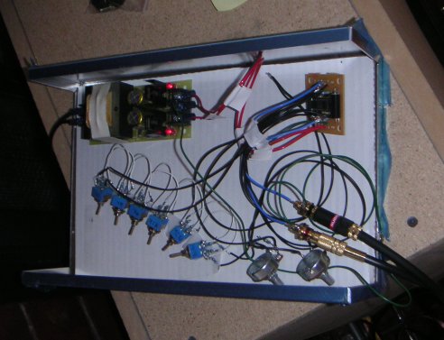 See below for a couple of pics. The circuit is still just lying in the project case, held in place with a couple of pieces of scotch tape. I am waiting for a new drill bit to arrive so that I can make the holes for the controls.