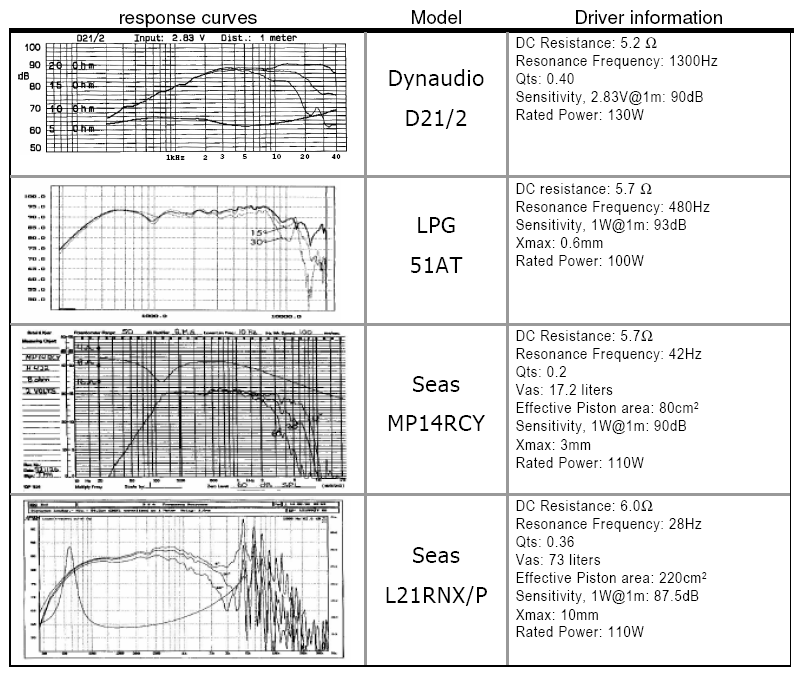 Information on the Drivers Used in the 4-Active Loudspeaker: