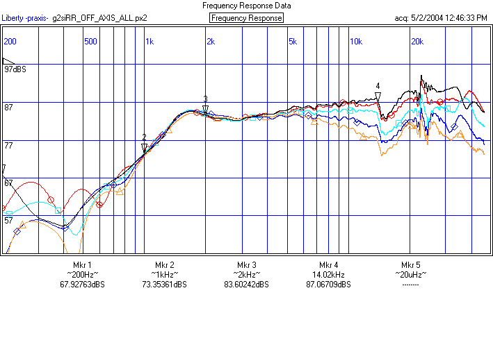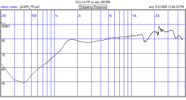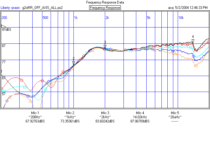 Done at 0.25m. Praxis is recording actual SPL level. Subtract approximately 12 dB to get dBSPL @ 1m equvalent.