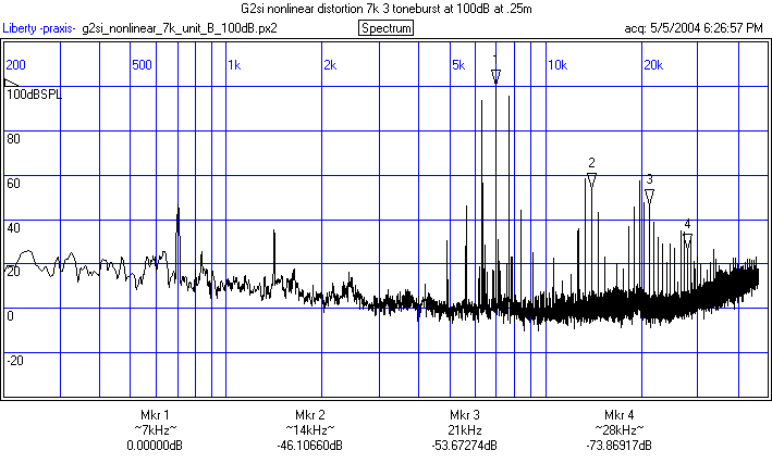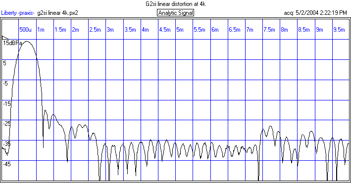 For comparison, the FFT of a single 4k tone is shown. The g2si had no problem with this.