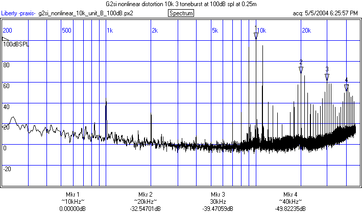 The ribbon deformed when trying to do a 3 toneburst at 106dBSPL at 0.25m with the center burst frequency at 4k.