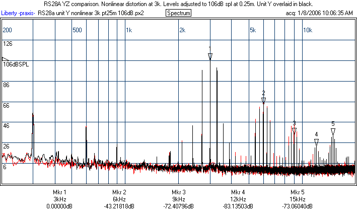 Anyway, the gist of it is that one of these is excellent. The other is still very good, but there is a bit more low level higher order distortion. Still, I would call both of these useable to 1.3-1.5k, depending on how loud you want to play. If you're obsessive, you'll buy another one or two tweeters and find a tweeter like unit Y...