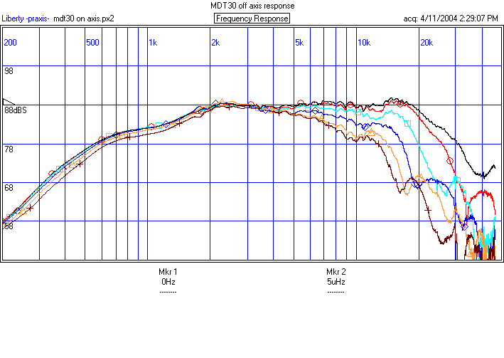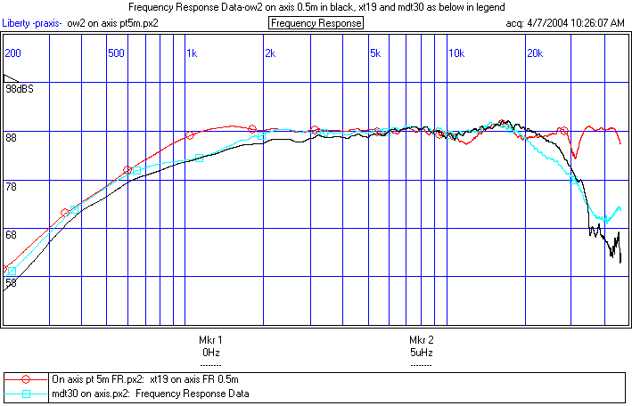 What about the morel? A good tweeter. Better nonlinear distortion than the ow2, though not as good as the xt19--unless you're going to cross low and/or with a shallow slope. About the same directivity as the xt19. Nonlinear performance is still good, though may not be as good over 8.5k than the other two. (This issue of linear distortion is turning out to be a little less clear cut that it first appears. Frequency response variations can affect the results and it becomes very difficult to make a meaningful distinction between small differences on the graphs.)