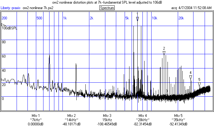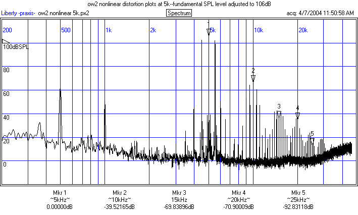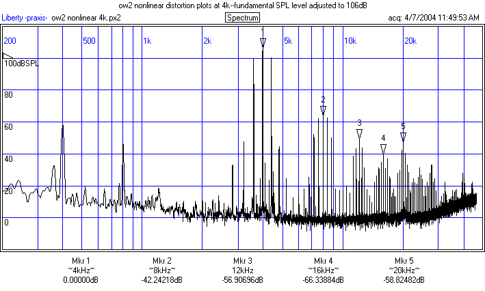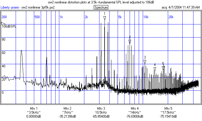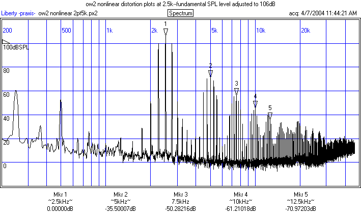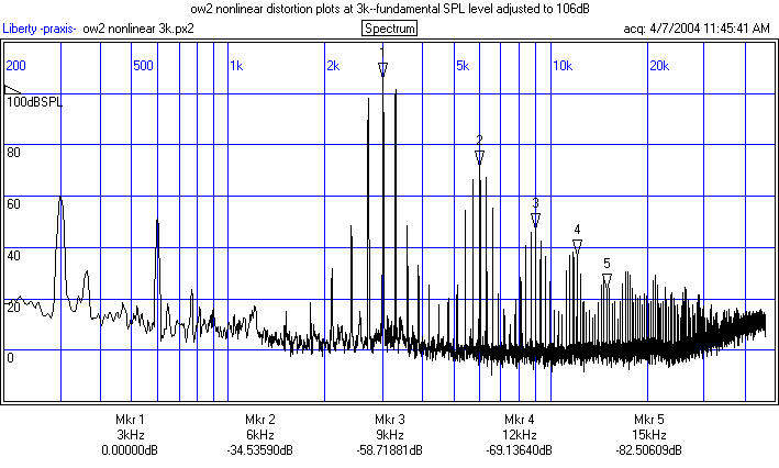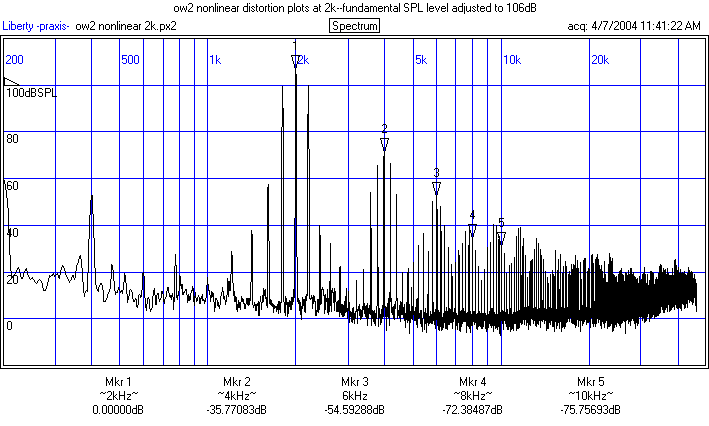 1. While having acceptable 2nd and 3rd order distortion products, the ow2 had high number of higher order distortion products. I did not expect this for everyone's darling (mine too!) In fact, on 3rd order and higher, the ow2 turned in a worse performance than the xt19 and the mdt30 at virtually every frequency.