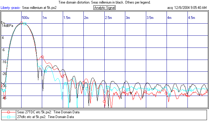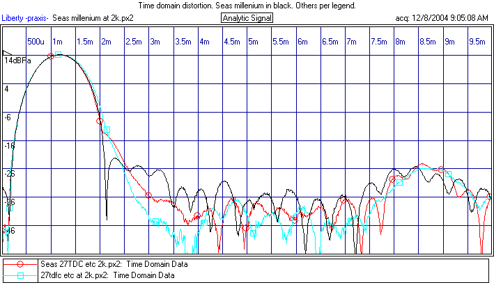 So what am I saying, explicitly? In these tests, the millenium cannot be said to be significantly better that it's cheaper siblings. These tests are by no means the exhaustive test and summary judgment of these tweeters, but on the whole, I was disappointed by the millenium's numbers. Now, had I never tested the 27 series, I'd be inclined to say the millenium is pretty darned good. And it is. But its siblings, at a much cheaper price, offer similar performance.
