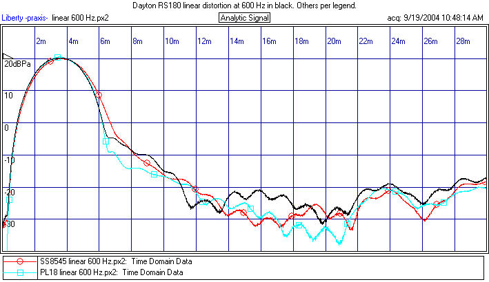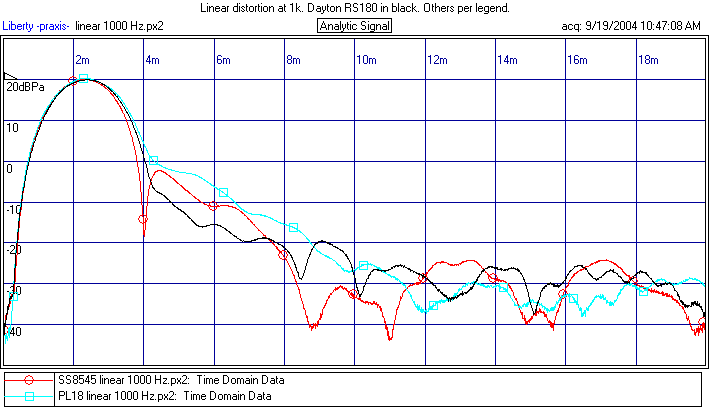 All three of these drivers measured very closely. The winner with respect to linear distortion is the Dayton. But not by much. Picking a winner in regards to nonlinear distortion is more difficult. Overall, the Scan Speak had the best performance being incrementally better in all categories except one. It would be the clear winner, except the Dayton was markedly better at 150 Hz. The nonlinear performance of the PL18 was surprisingly good, but it did worse on the stored energy tests at 1k and 1.4k than the Dayton or the SS.