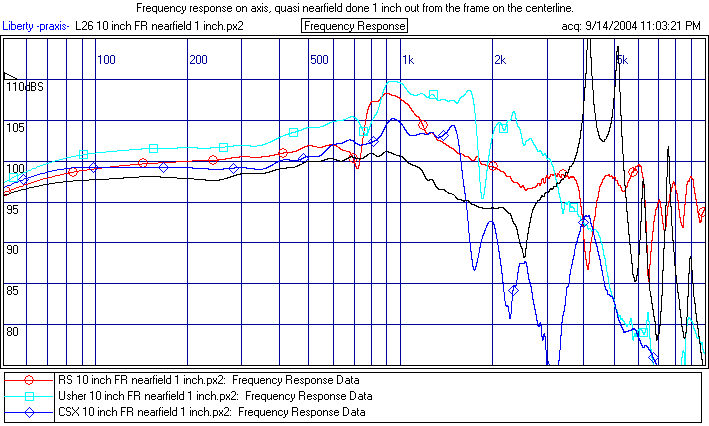 L26, Dayton RS280, Usher 1001A, and the Peerless CSX 10"