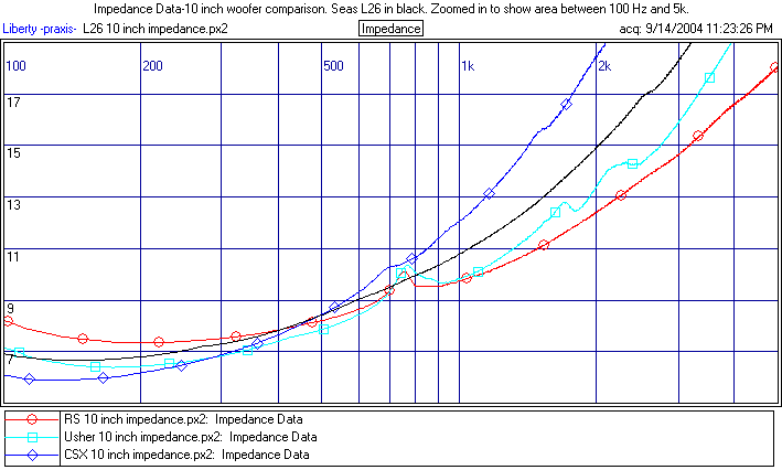 So the overall performance award goes to the L26, even considering the cost. The RS is a better value, but its FR irregularities starting around 700 Hz require a lower or steeper crossover than the Seas. The Peerless is average overall in nonlinear distortion, but has a relatively smooth FR past 1 kHz and is well priced. You can get almost 2 Peerless for the price of one Seas. The Usher 1001A is a solid performer, but at it's current price, the L26 is a better value.