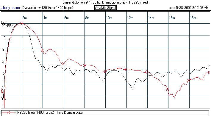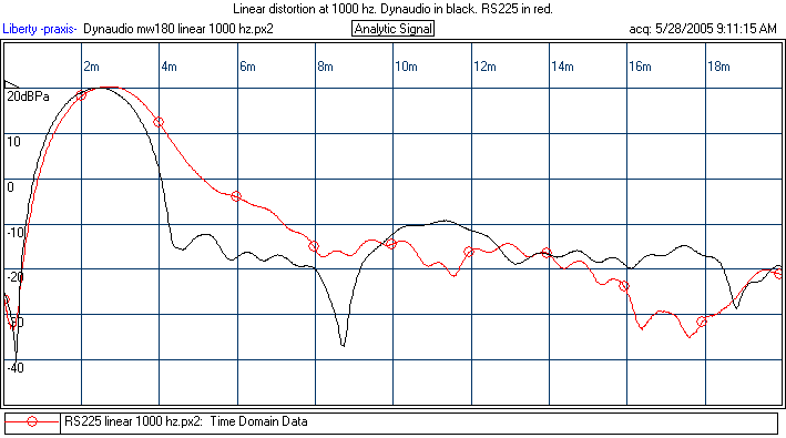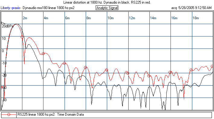 The Dynaudio MW180 has a remarkably smooth FR curve and associated outstanding linear distortion. On the flip side, it does not distinguish itself in regards to nonlinear distortion. It is clearly not as good as the SS8555 or the original RS225 prototype. If I were to guess, there is a foam/metal pole vent grill which causes some higher order distortion. Though this would be better in a box, still, much of the sound radiates out the front of the cone.(Look at spectral distortion test, which is done at 1 inch.)