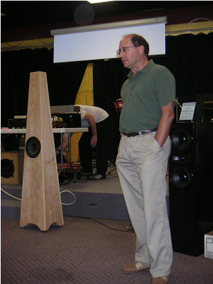 We also had some nice projects in the electronics section this year. On the left, I think by Bill Mennuti, is a single ended amp project he built on to an upside down roasting pan! Nice job, but what will you do at Thanksgiving this year? There was also an amp converted to full battery power but someone will have to EMail me with the details on that since I have completely forgotten... Also on display was a passive preamp from Steve O'Toole, shown at bottom.